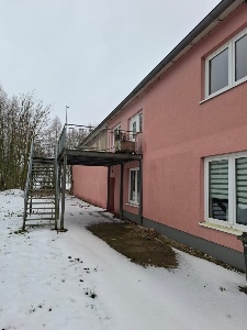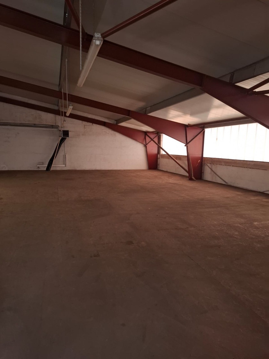 Die Halle wurde 2001 massiv gebaut, ist mit einem flach geneigten Dach erstellt und gedämmt. Der untere Hallenbereich besitzt eine Lagerfläche von insgesamt ca. 400 m². Auf einer zweiten Lagerebene, die über eine Treppe erreichbar ist, stehen ca. weitere 250 m² Lagerfläche zur Verfügung. Die gesamte Halle ist beheizbar, eine Heizung sowie Strom (230V+400V) und Beleuchtung sind vorhanden An der Westseite befindet sich ein Rolltor mit Laderampe. In die Halle wurde ein massiver Bürokomplex eingebaut, der sich über zwei Etagen erstreckt und eine Grundfläche von ca. 250m² aufweist.