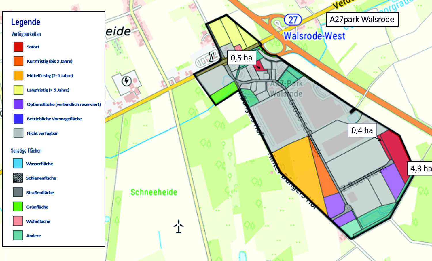 The image shows an aerial view of an extensive rural landscape with fields, forests and wind turbines in the background. Several large buildings and solar panels on roofs can be seen in the foreground, suggesting industrial or commercial use. © Deltaland, creator: Falcon Crest Air